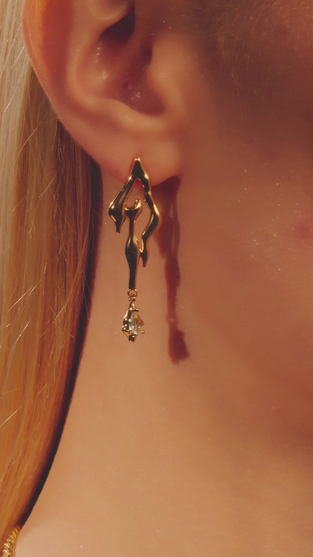 Our 18K Real Gold Plated Blue Gem Flame Earrings Earrings are ethereal. This pair of earrings is adorned with high quality zirconia blue gemstones that sparkle and shine angelically. When you can’t decide on a look, match these earrings with your outfit to be your saving grace!