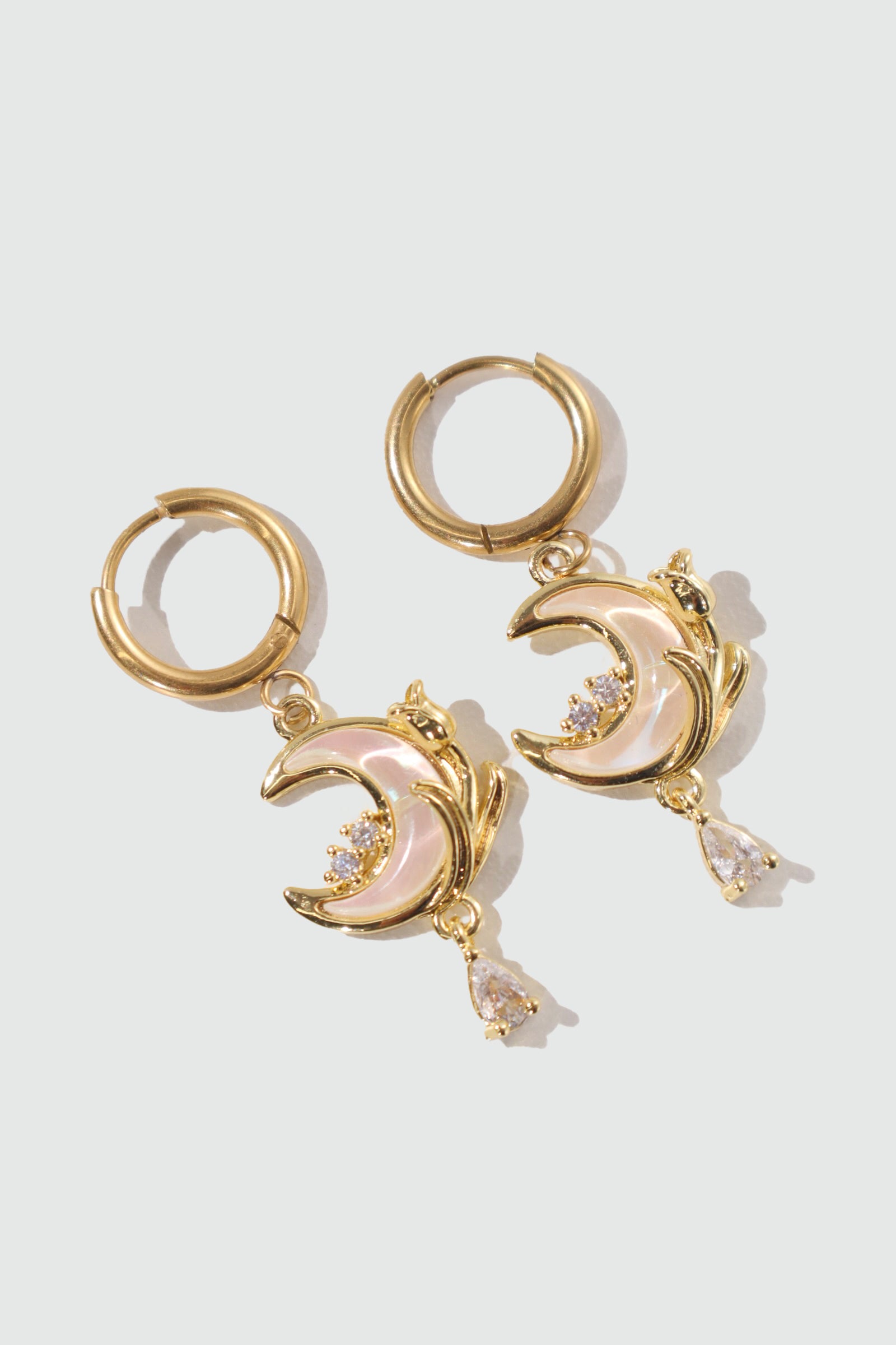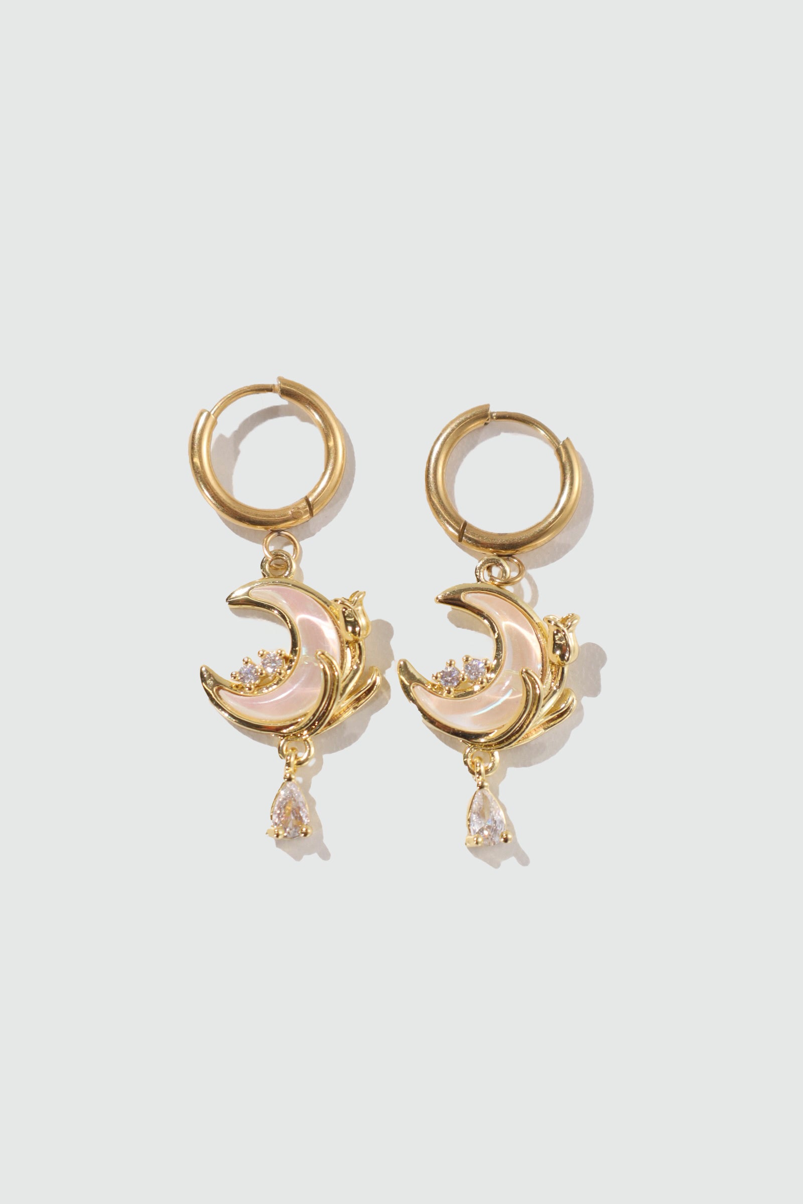 18K Real Gold Plated White Rose Moon Earrings
