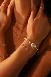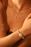 Our plated jewelry is water-resistant, tolerating light exposure like hand-washing, showering, or rain. To maintain its beauty, we recommend avoiding water exposure and contact with chemicals such as sweat, lotion and soap. Clean it with a dry, soft cloth after use and store it in the provided airtight bag. Following these steps will help keep your jewelry shining for a long time!