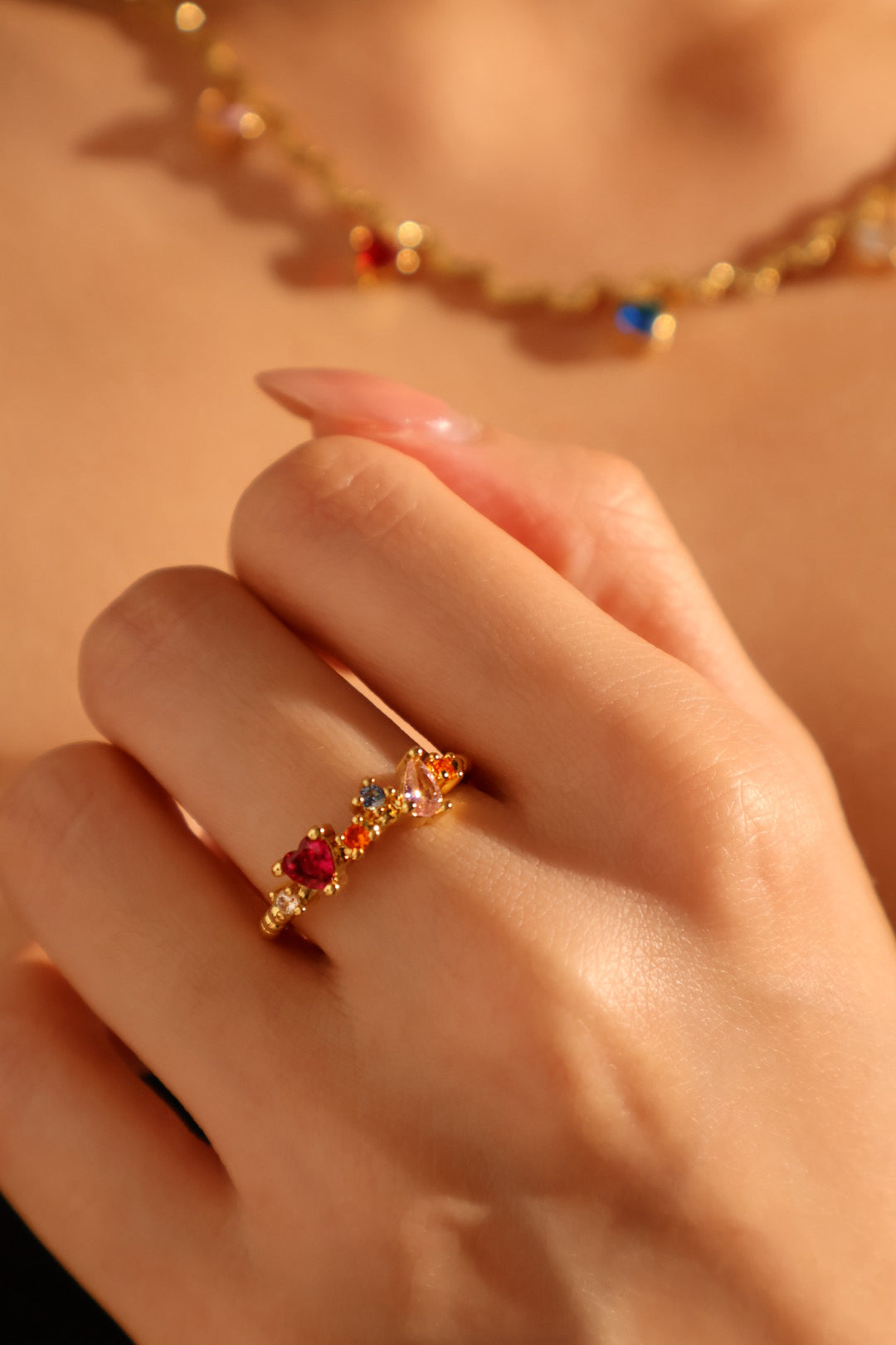 We found this cool and chic ring for you! Our rings are open sizes allowing you to mix and match to create your own unique style. The ring is made of a water-resistant band with zirconia color gemstones for a quality look. This ring is perfect for everyday use...