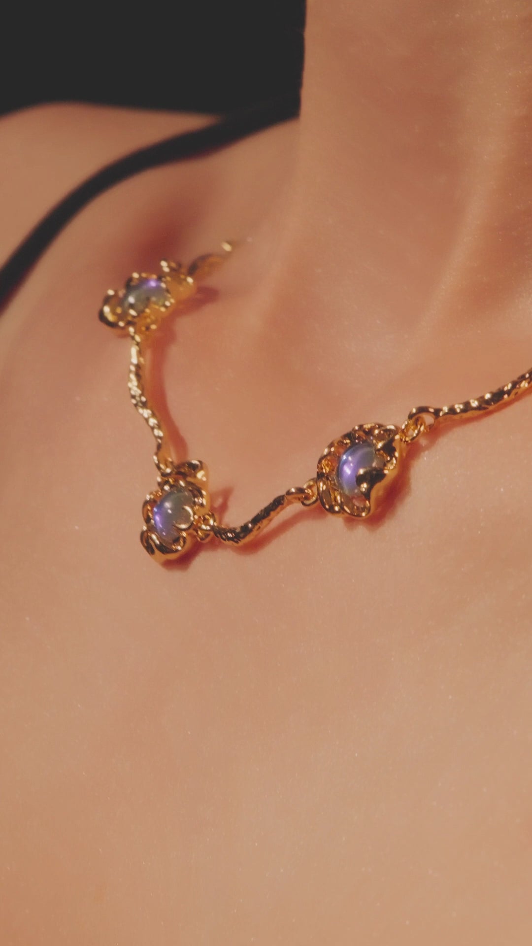 18K Real Gold Plated Multi Deep Blue Moonstones Necklace
