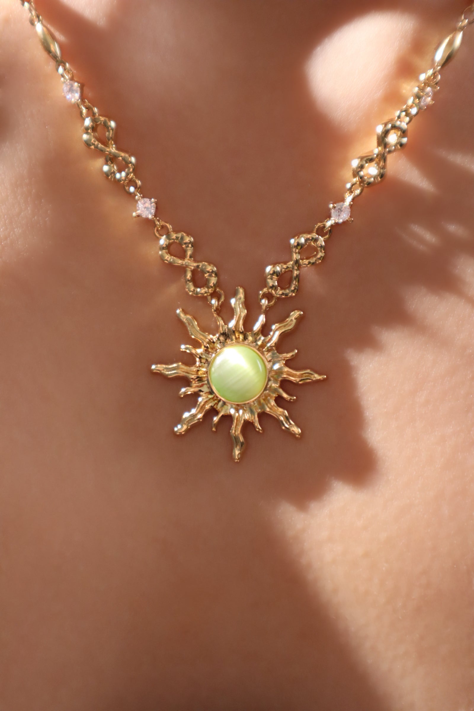 18K Real Gold Plated Green Opal Sun Necklace