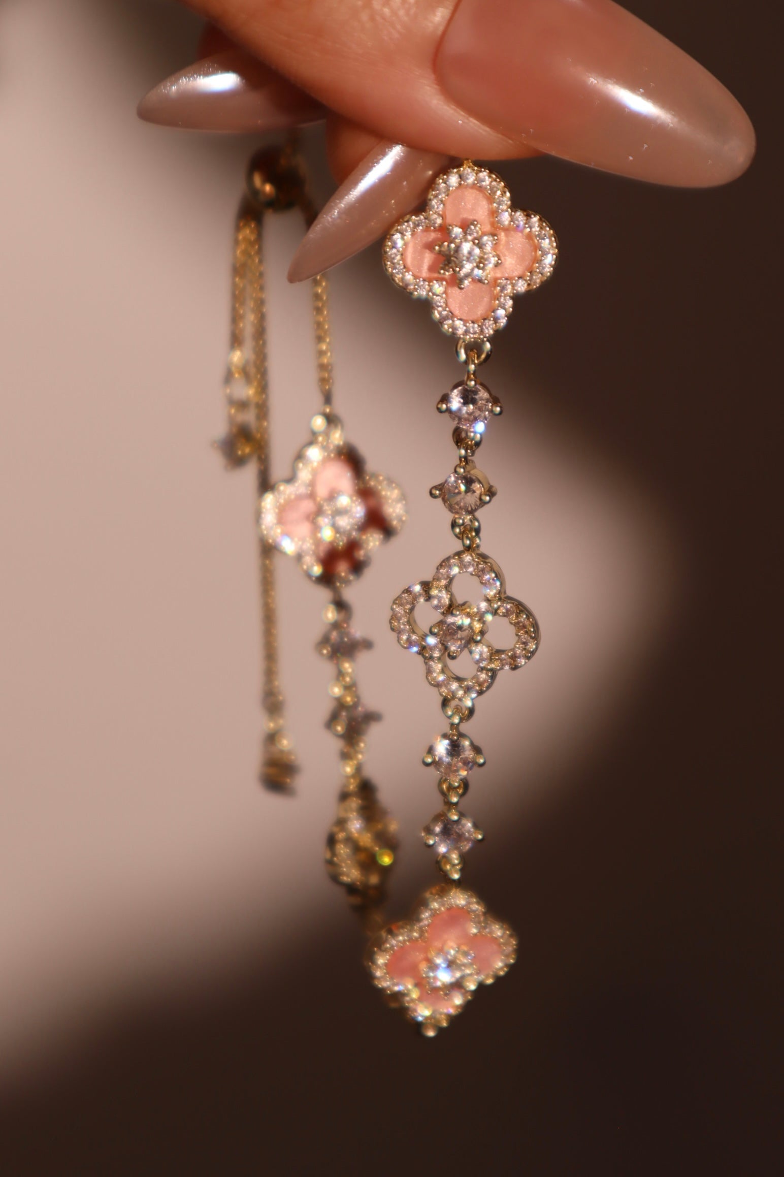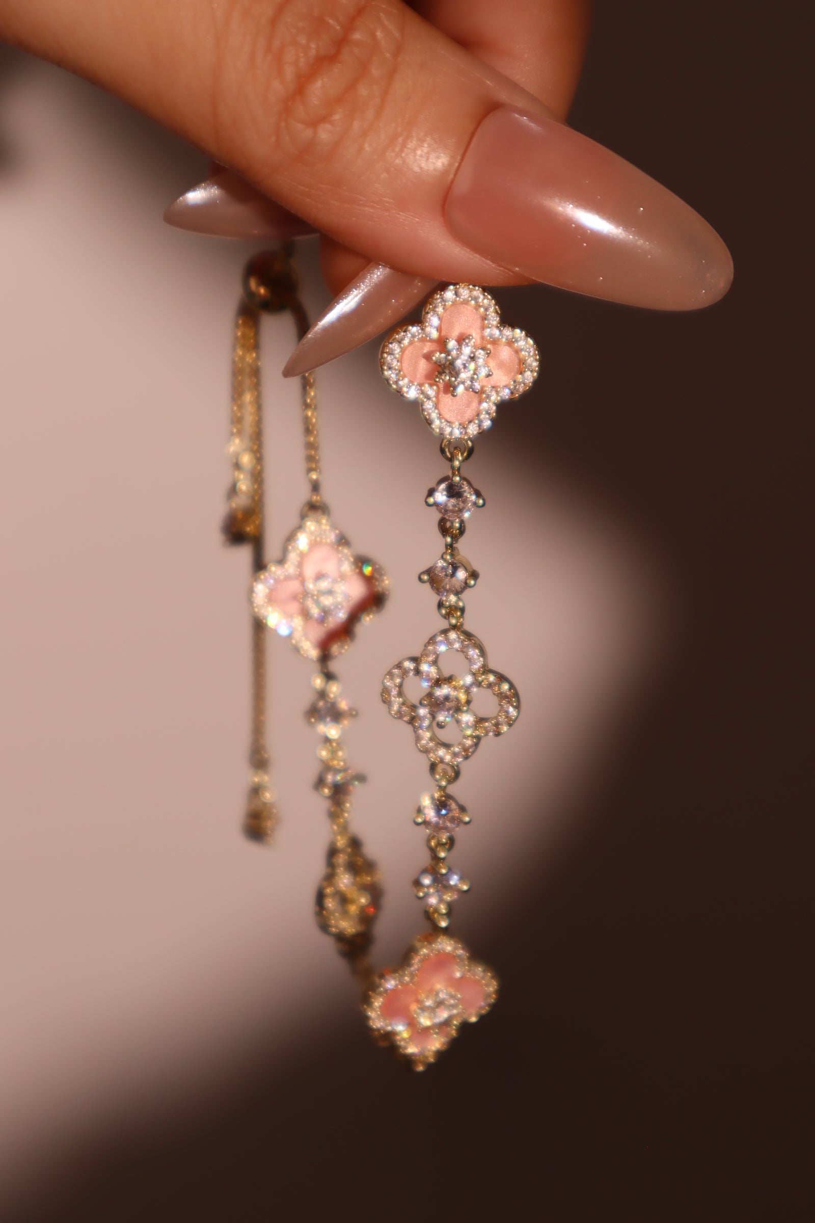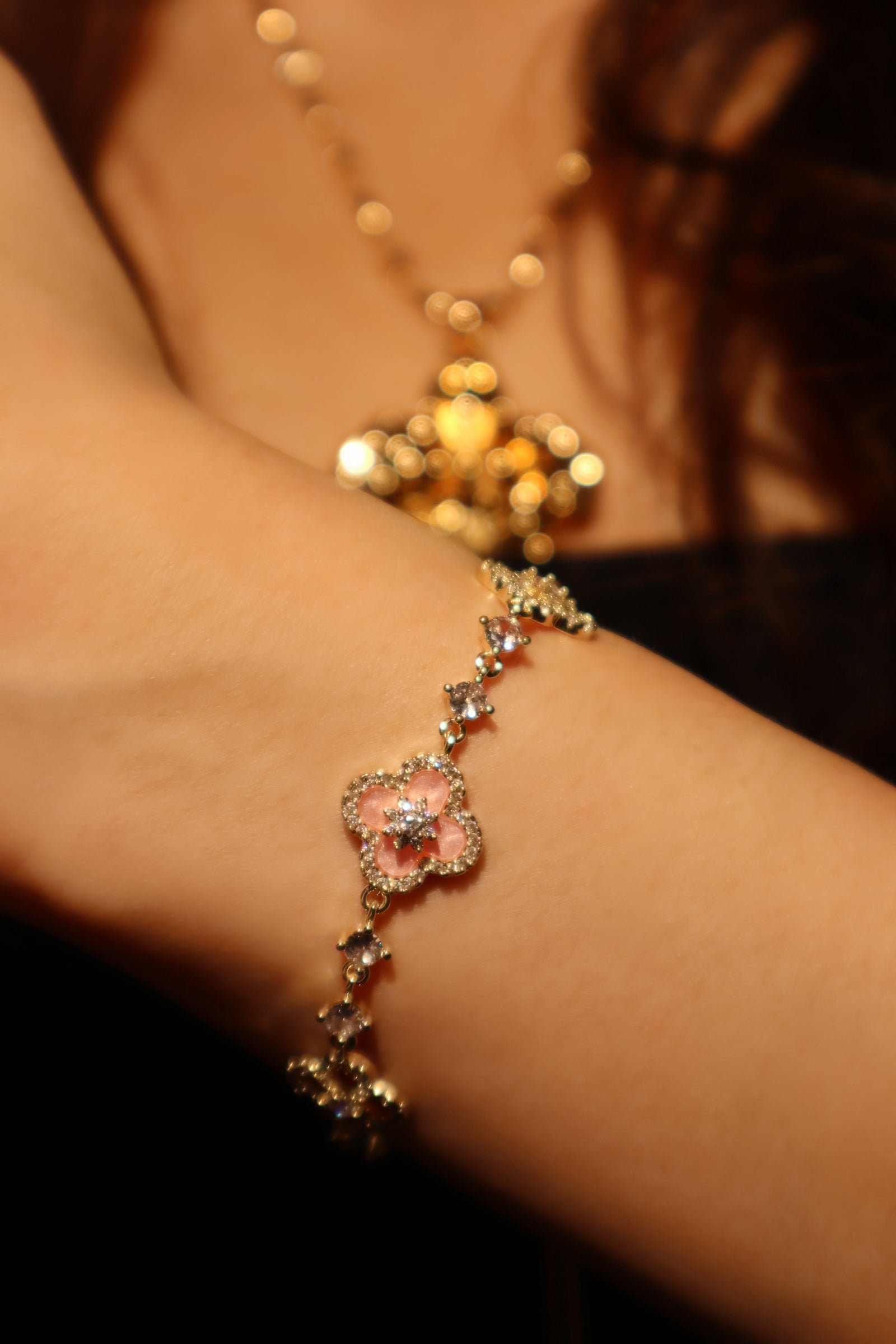 - 14K real gold plated + high quality zirconia diamonds + pink resins