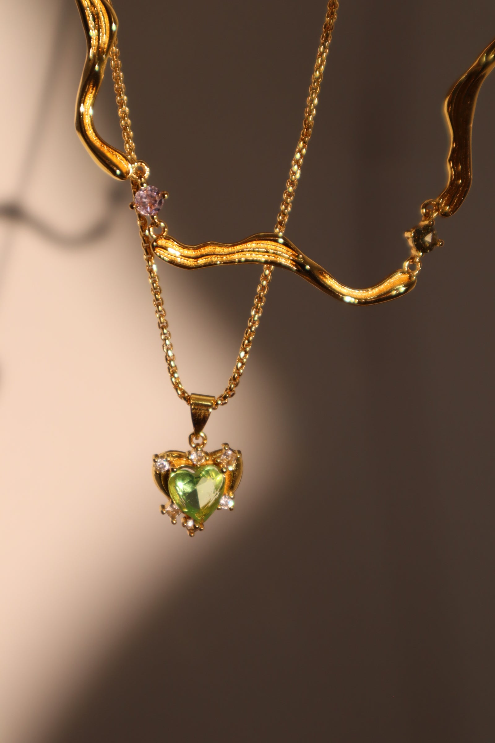 18K Real Gold Plated Color Gems Waves Layer Necklace