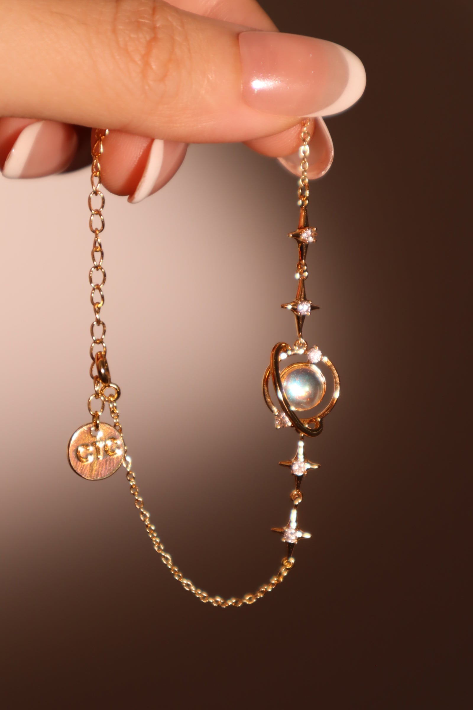 18K Real Gold Plated Moonstone Saturn Star Bracelet