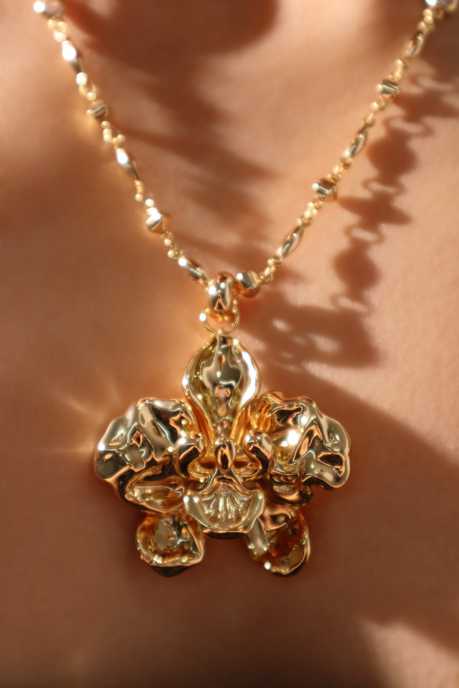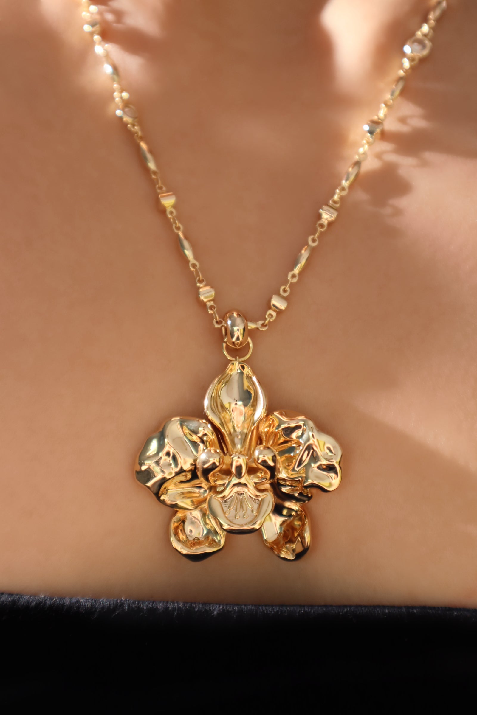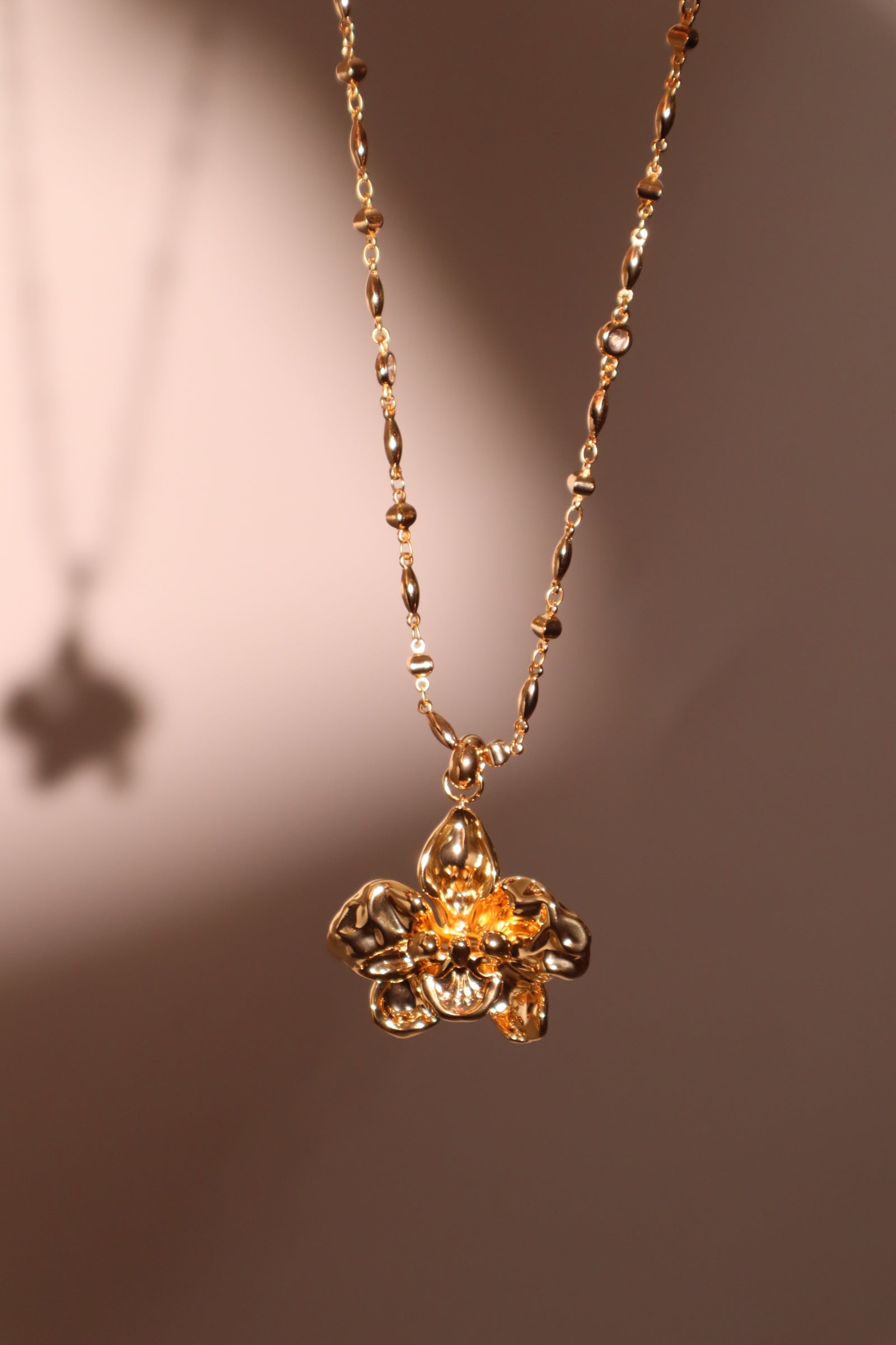 Flicker goodbye to dullness and stand out in our 18K Real Gold Plated Orchid Necklace. With the proper lighting, the zirconia diamonds add a pop of shine to your ensemble. This unique necklace makes your outfit stand out and is also a great gift for her or him.