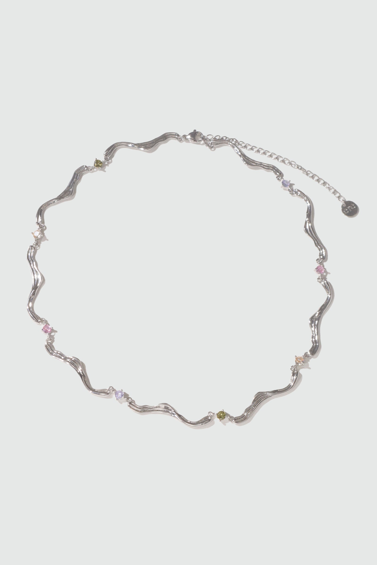 Flicker goodbye to dullness and stand out in our Platinum Plated Color Gems Waves Layer Necklace . With the proper lighting, the zirconia color gemstones add a pop of shine to your ensemble. This unique necklace makes your outfit stand out and is also a great gift for her or him.