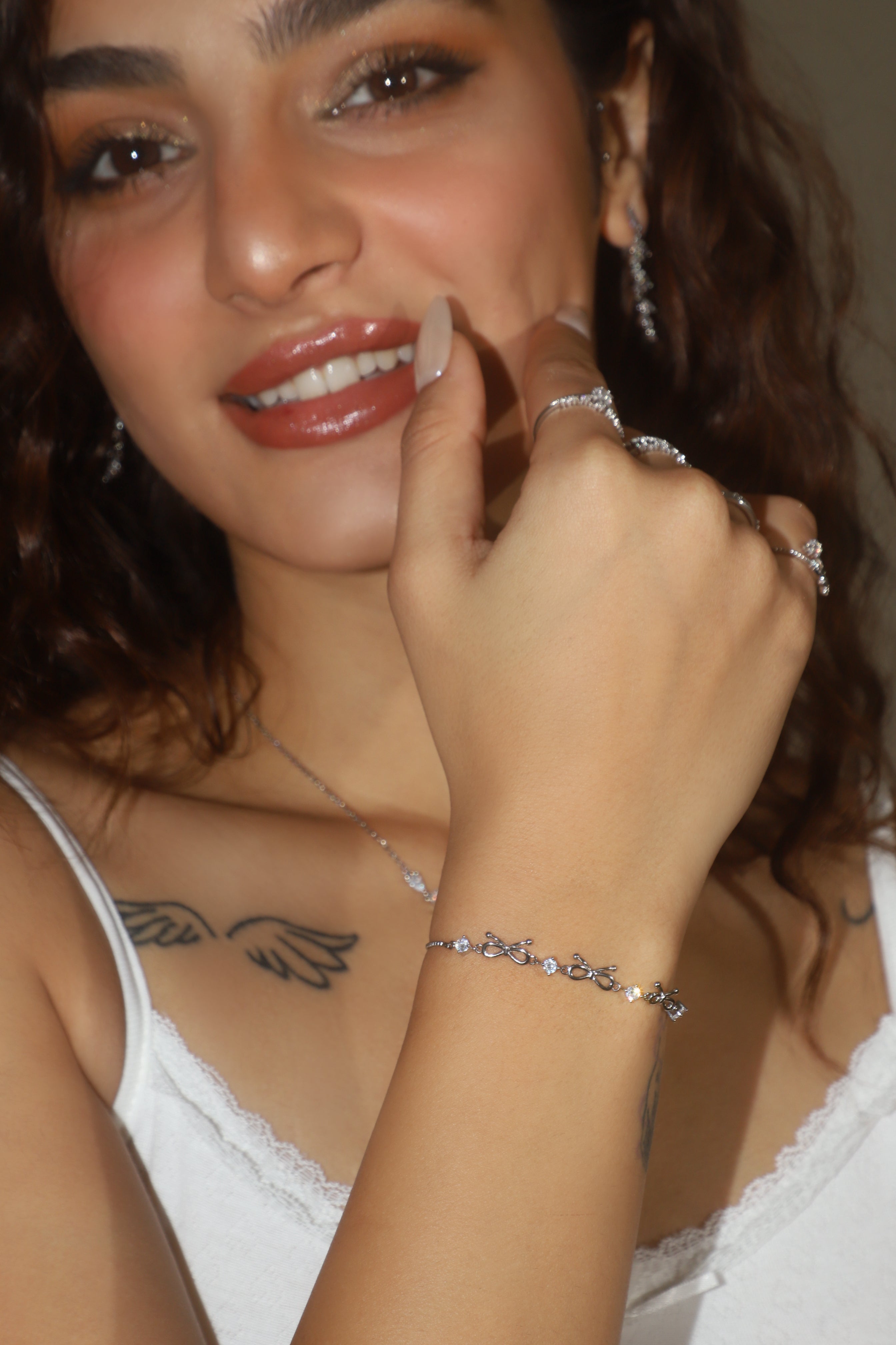 Platinum Plated Multi Diamond Bowknot Bracelet (Pre-order)