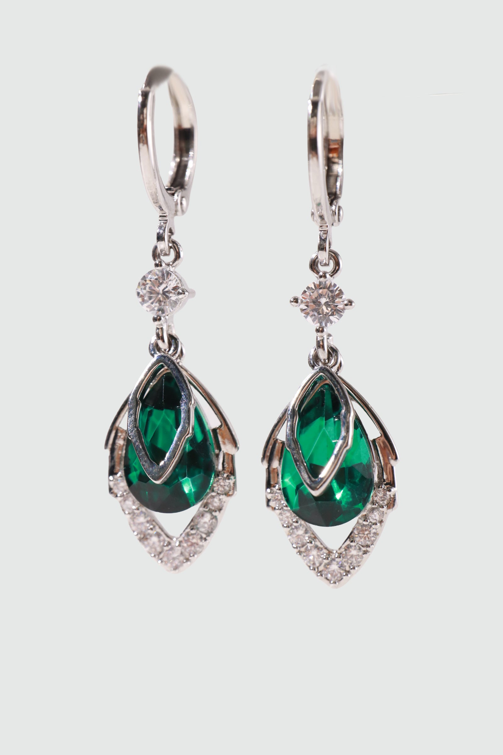 Our Platinum Plated Green Gem Droplet Earrings are ethereal. This pair of earrings is adorned with high quality zirconia green gemstone that sparkle and shine angelically. When you can’t decide on a look, match these earrings with your outfit to be your saving grace!