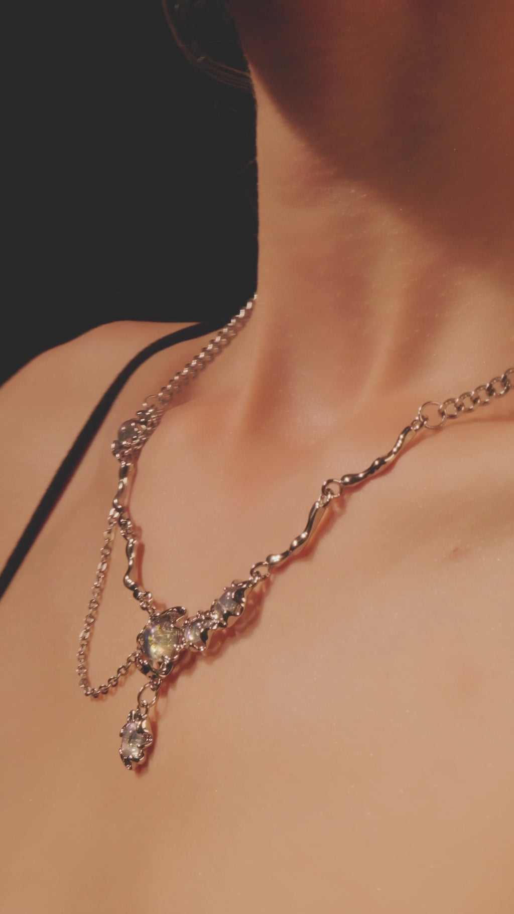Platinum Plated Opal Dangle Necklace (Pre-order)