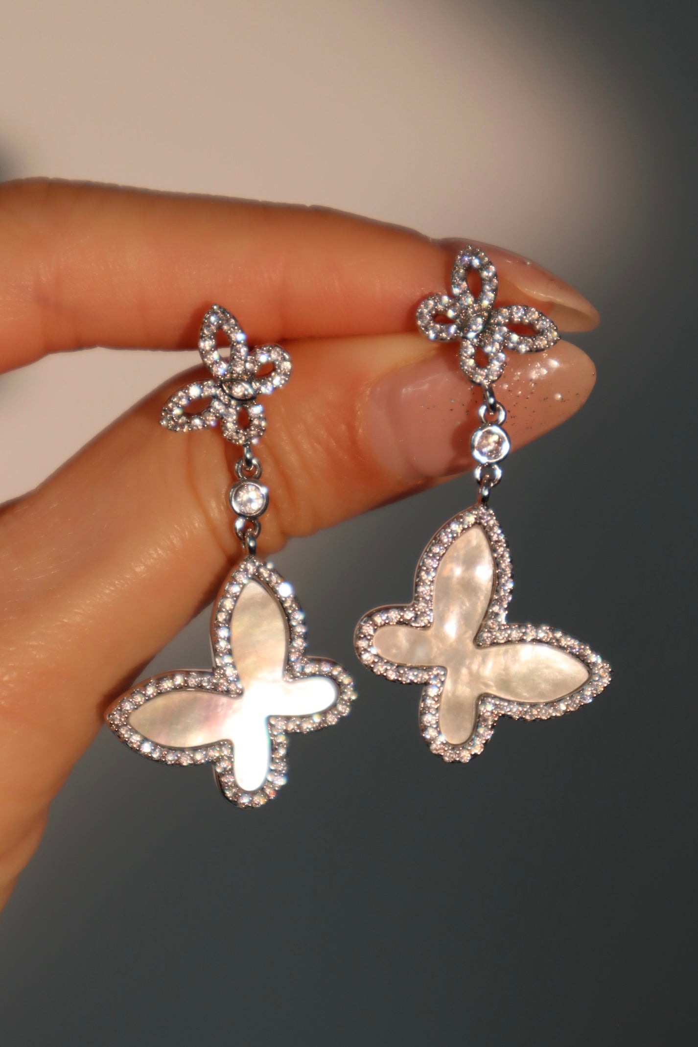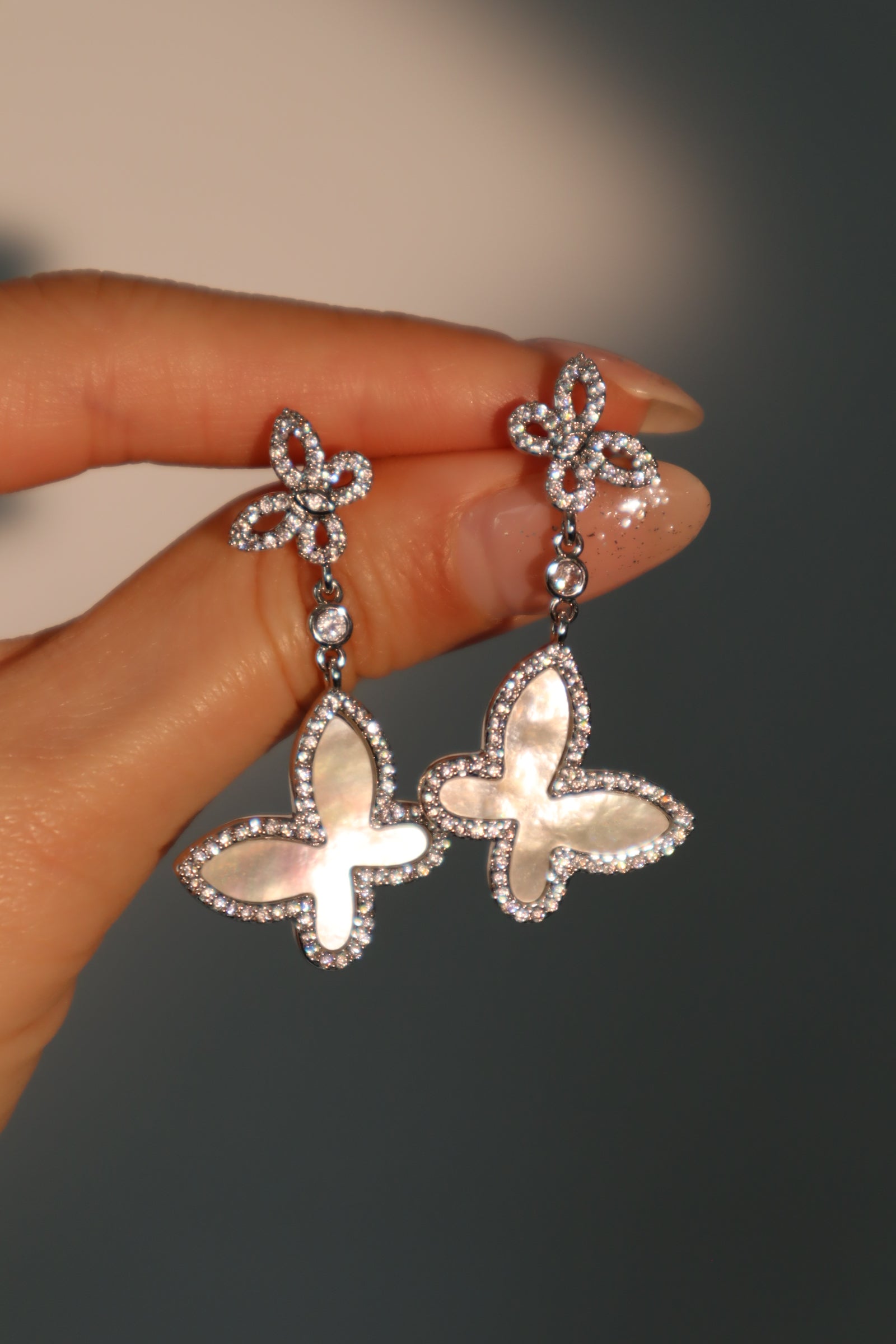 Our Diamond Shell Butterfly Earrings are ethereal. This pair of earrings is adorned with high quality shell pearls that sparkle and shine angelically. When you can’t decide on a look, match these earrings with your outfit to be your saving grace!