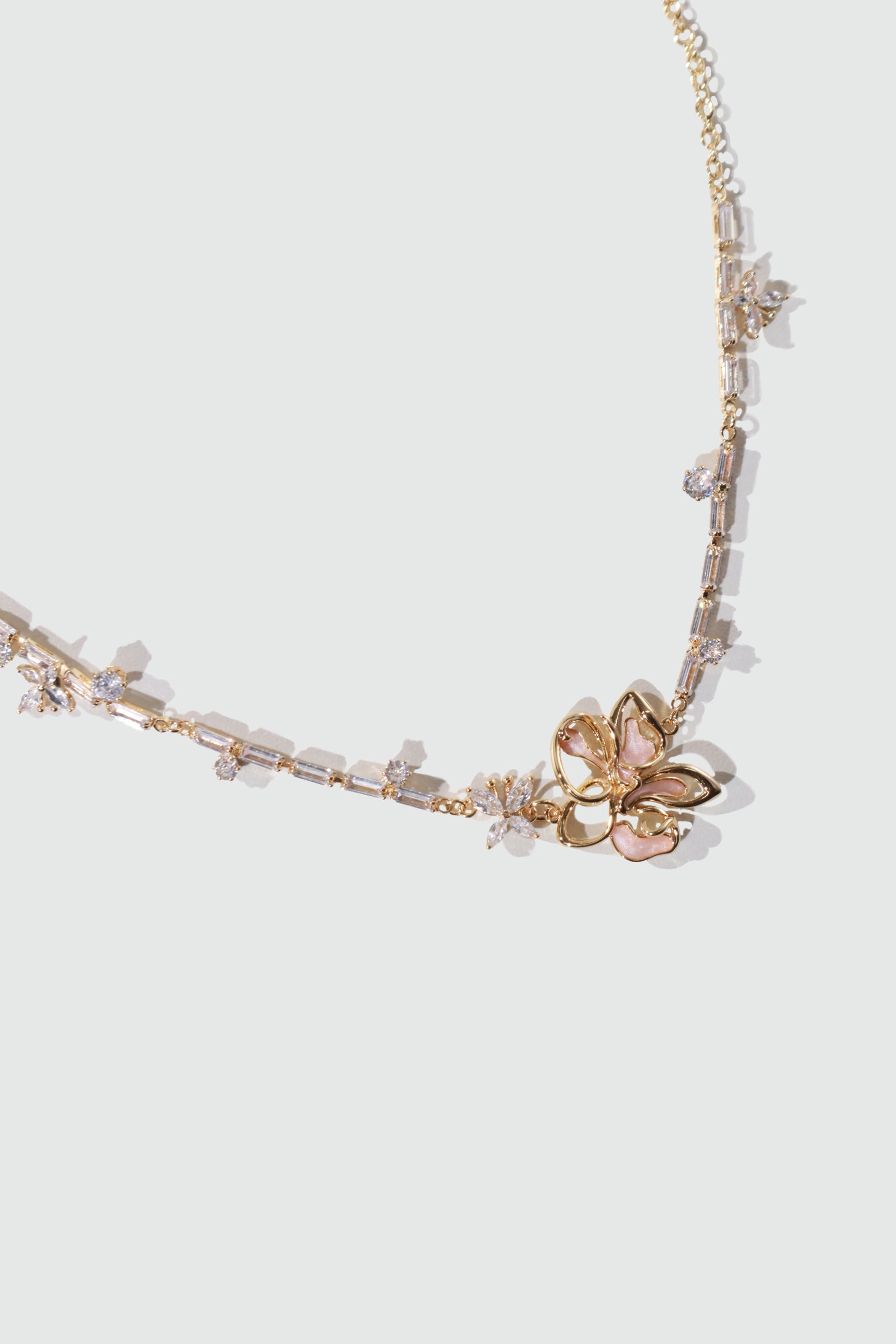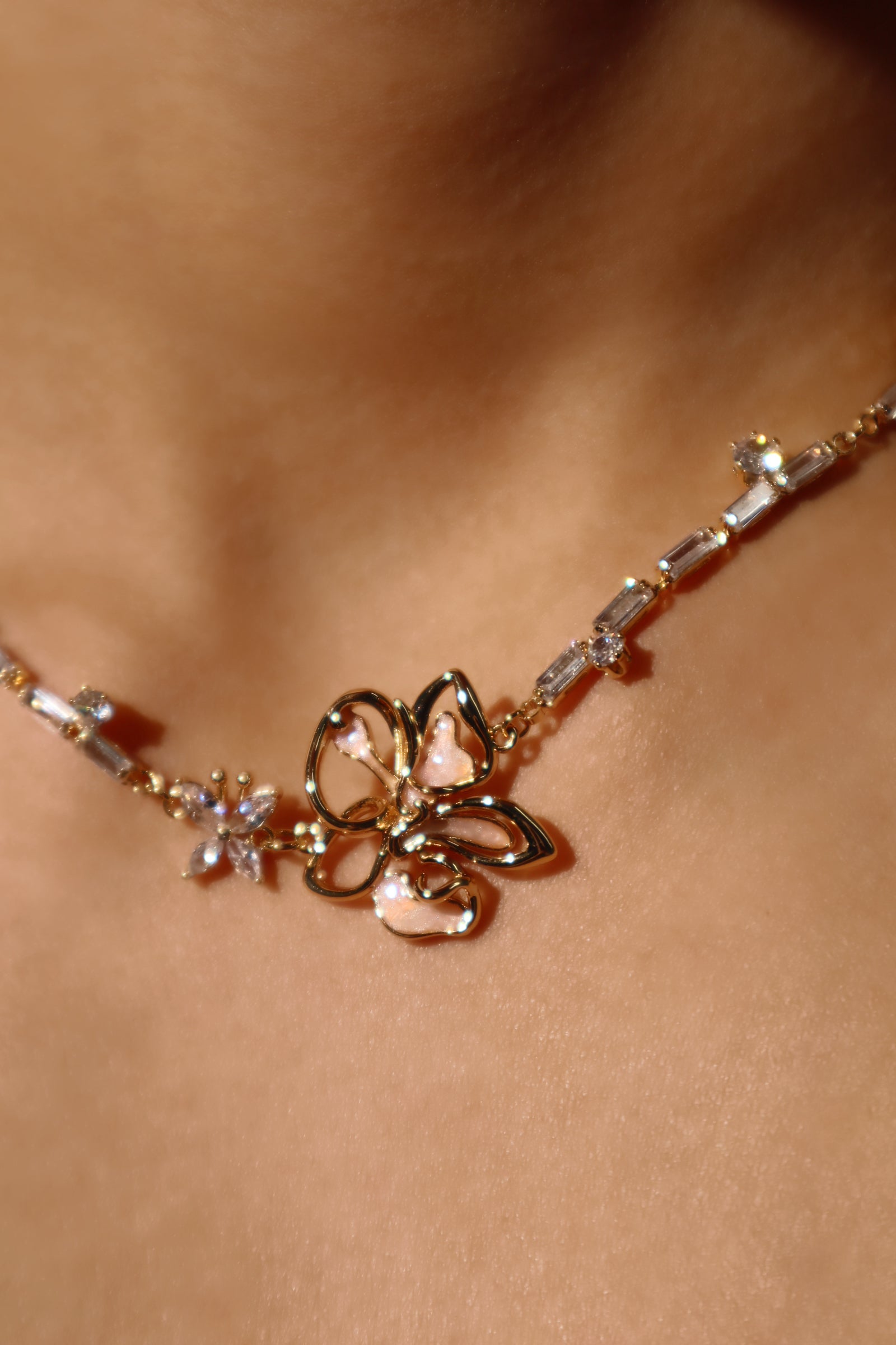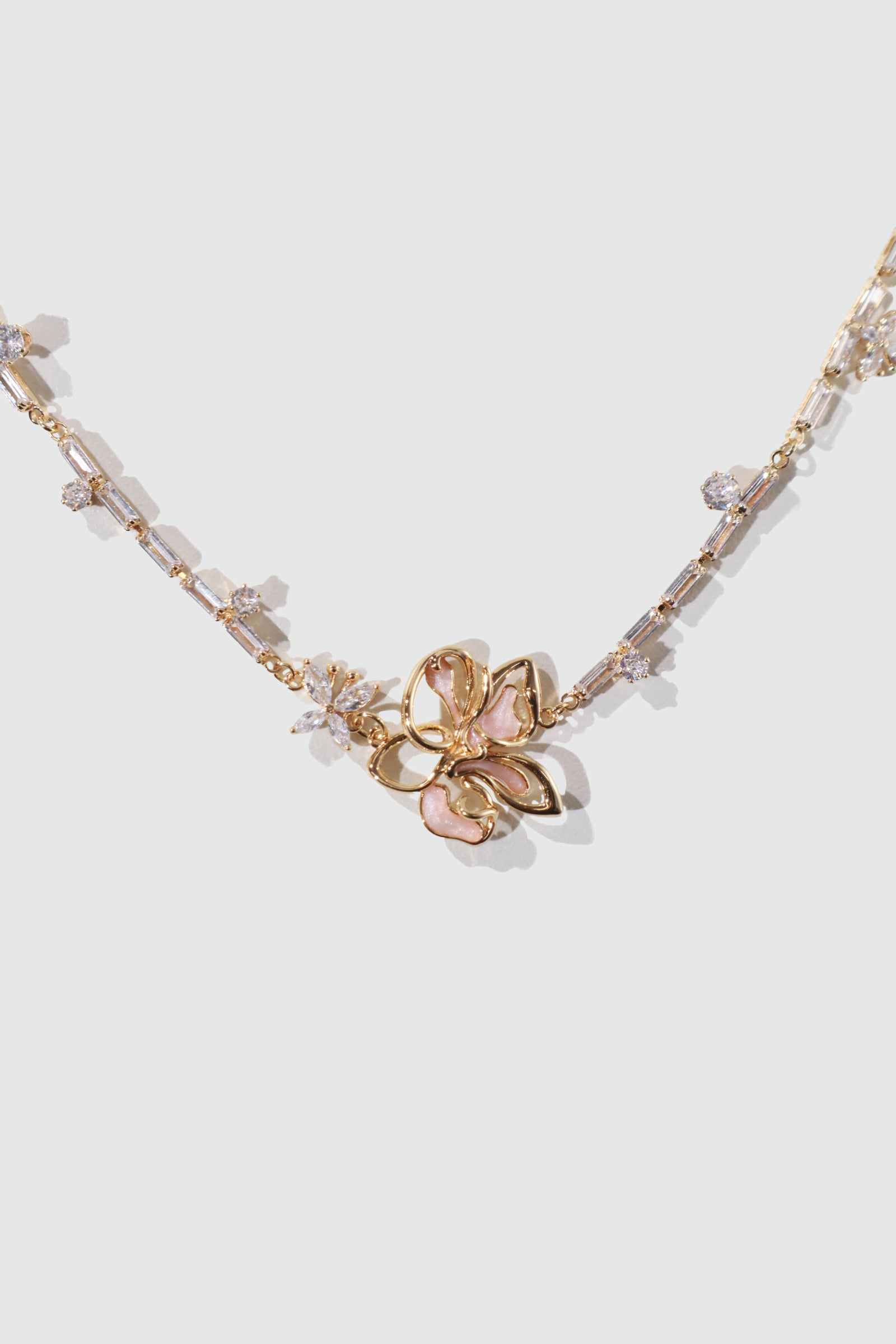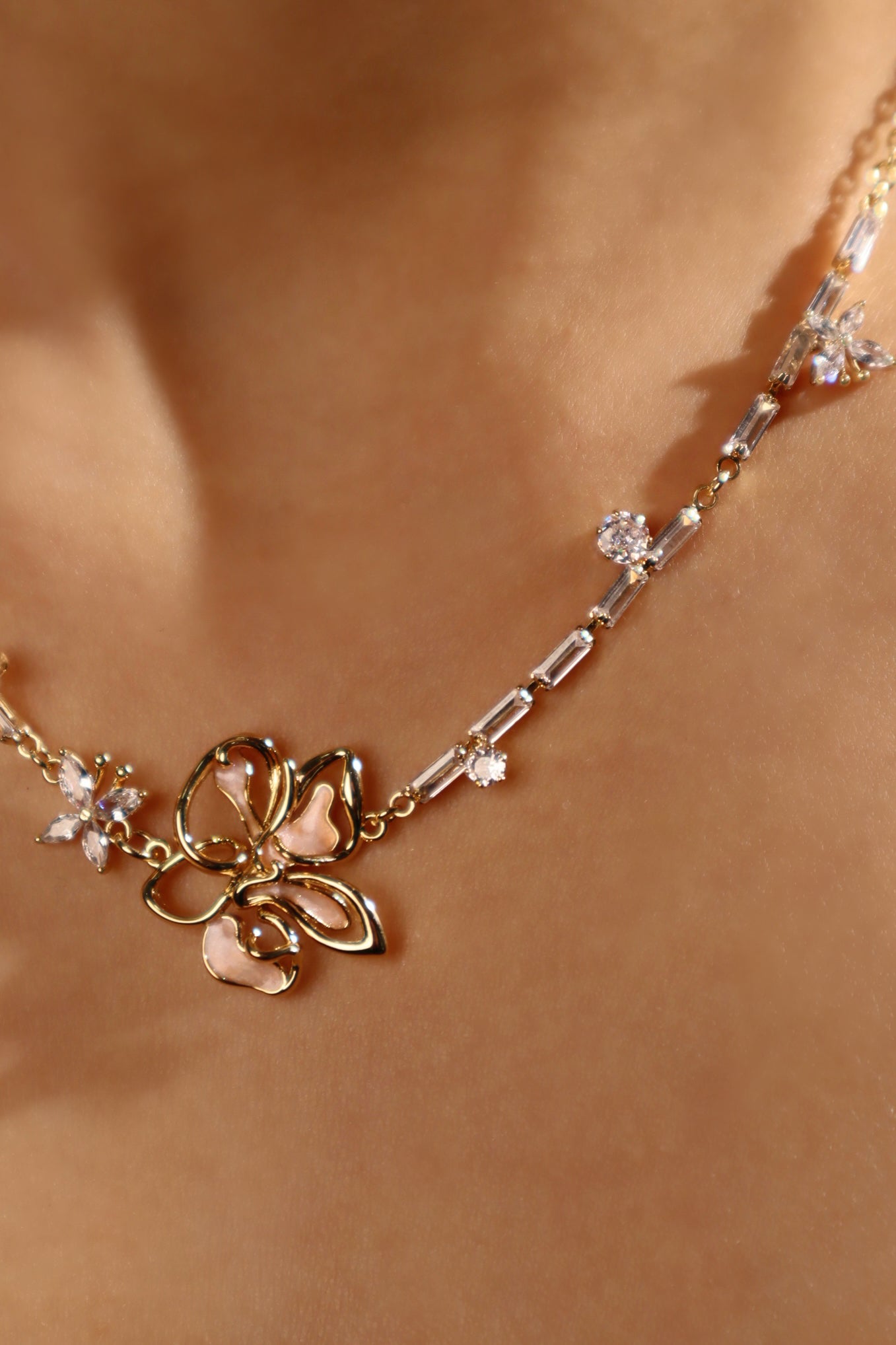 18K Real Gold Plated Butterfly Pink Flower Necklace