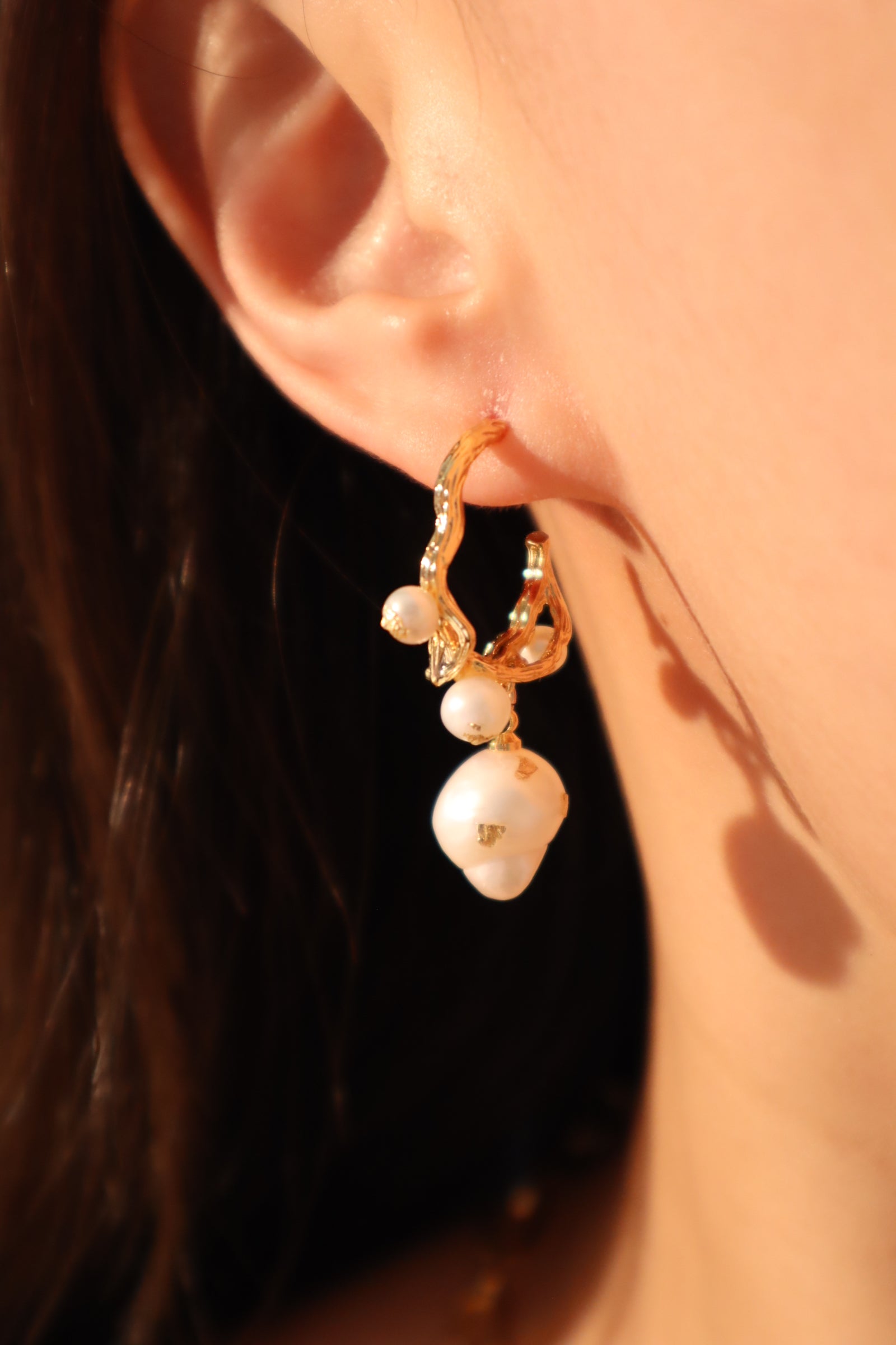 Our 18K Real Gold Foil Pearl Hoop Earrings are ethereal. This pair of earrings is adorned with high quality freshwater pearls that sparkle and shine angelically. When you can’t decide on a look, match these earrings with your outfit to be your saving grace!