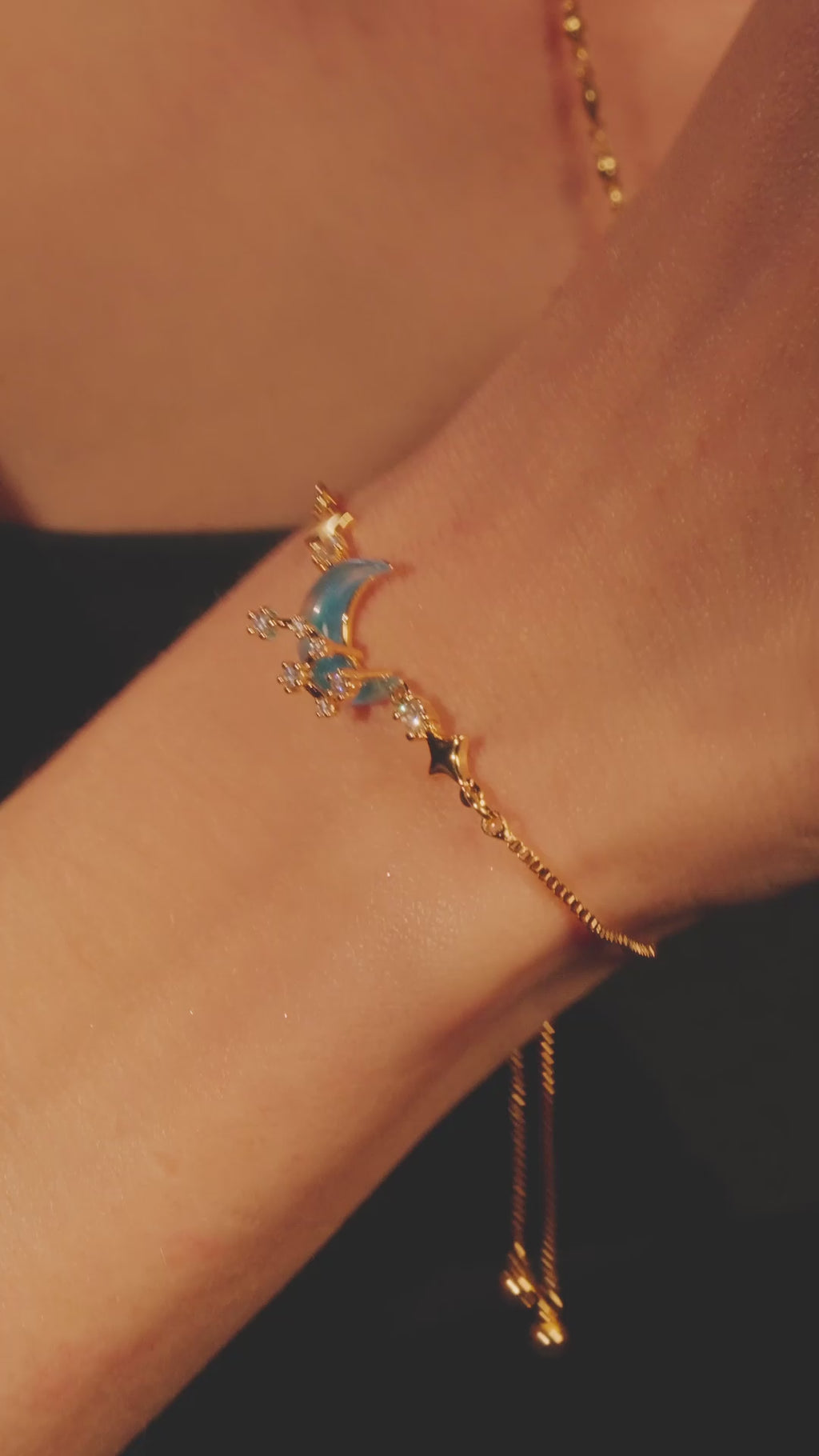 18K Real Gold Plated Moonstone Moon Star Bracelet (Pre-order)